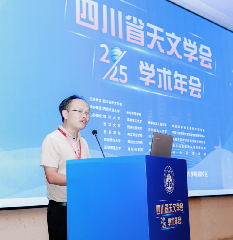 本网讯(文、图/江林巧)2025年8月10日至11日,四川省天文学会2025年学术年会在西南交通大学峨眉山校区成功召开。本次盛会由四川省天文学会主办,西南交通大学与乐山师范学院联合承办,四川大学、成都理工大学、成都信息工程大学等多所高校协办,吸引了来自中国科学院国家天文台、高能物理研究所、清华大学、南京大学、紫金山天文台、云南天文台等国内顶尖高校和科研院所的专家学者齐聚一堂,围绕天文学前沿研究与重大科研计划展开深入研讨与交流。