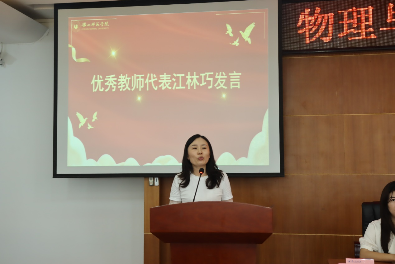 优秀教师代表江林巧发言,她以亲切真诚的话语,毫无保留地分享了自己的学习方法和成长经历。江老师的分享如同一股暖流,让新生们感受到了学院的温暖与关怀,也为大家提供了宝贵的学习借鉴。