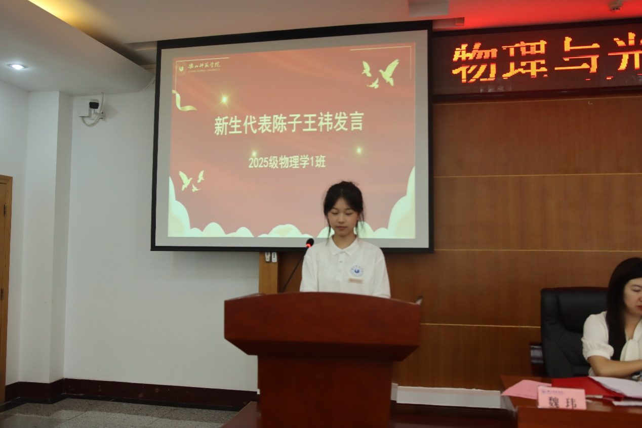 新生代表陈子王祎则表达了对大学生活的无限憧憬和坚定决心。她承诺将以勤奋和坚持为笔,书写属于自己的精彩篇章,为学院争光添彩。