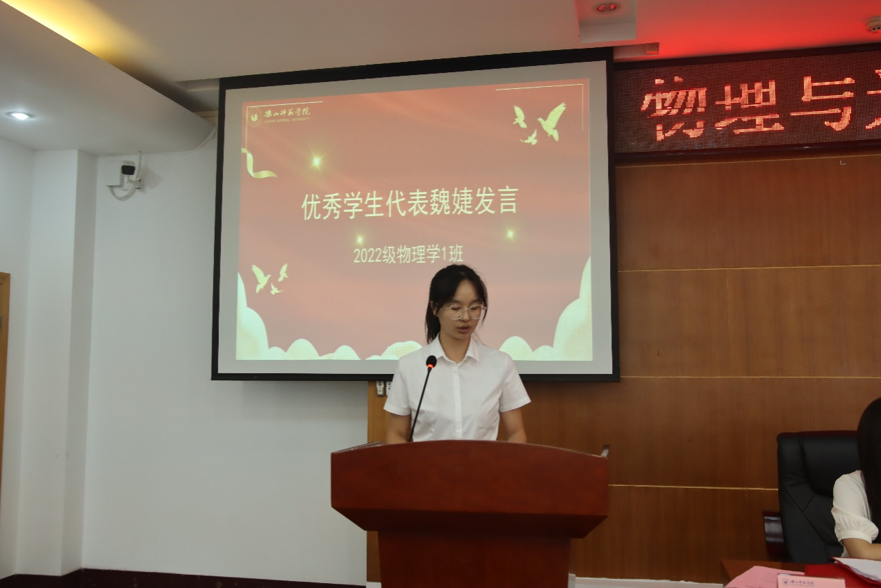 优秀学生代表魏婕以幽默真挚的语言,分享了自己的大学生活经验。她鼓励学弟学妹们珍惜大学时光,抓住每一次提升自我的机会,勇敢追求自己的梦想。