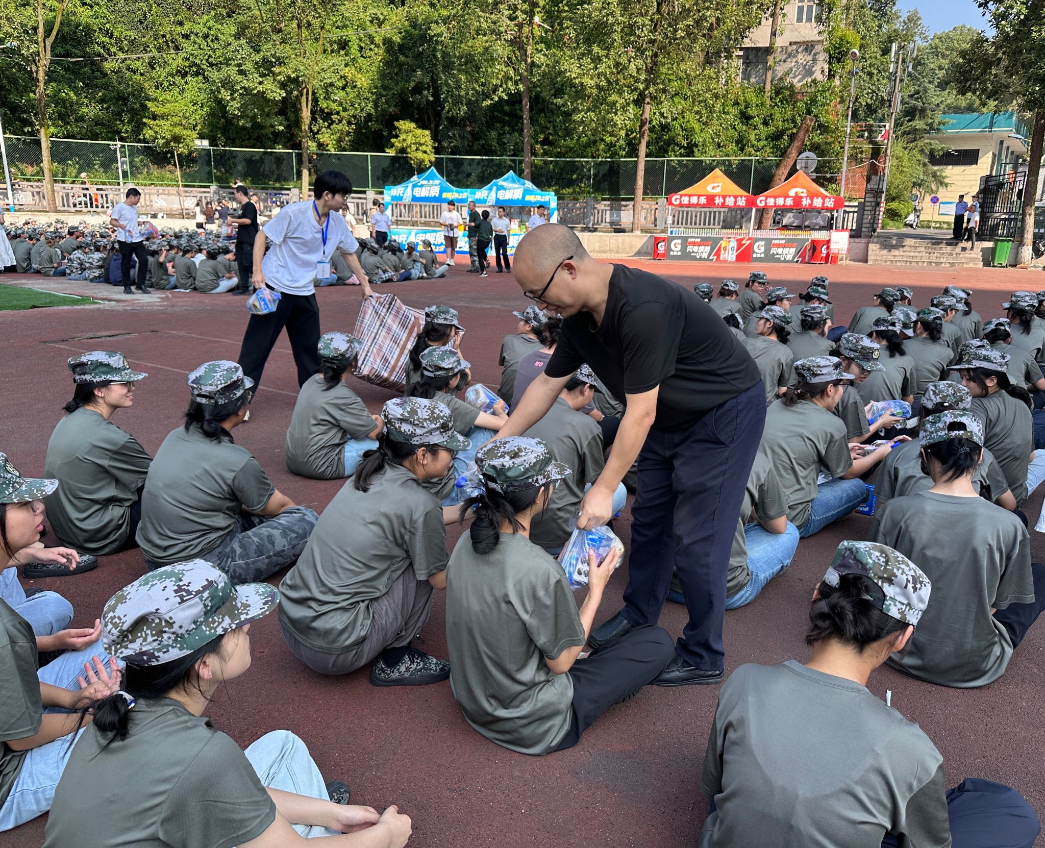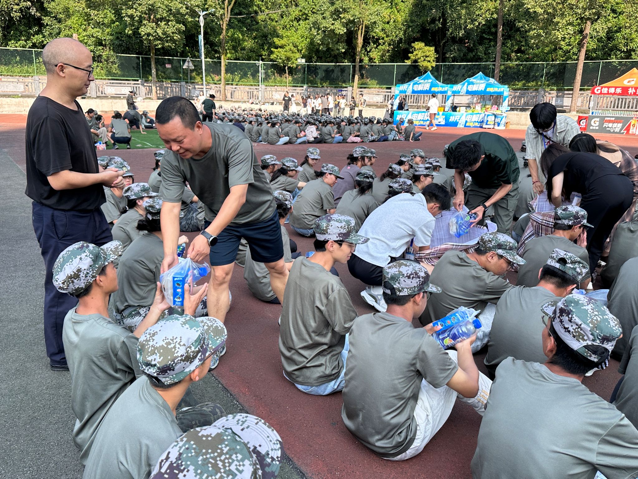 为助力新生更好地适应军训生活,9月25日,理电学院党委书记梁光德、院长肖志刚、院长助理杨建会、全体学工老师及新生代班一同走进军训现场,为全力以赴的新生们送来温暖,同时也向悉心指导的教官、默默协助的教官助理致以诚挚感谢。