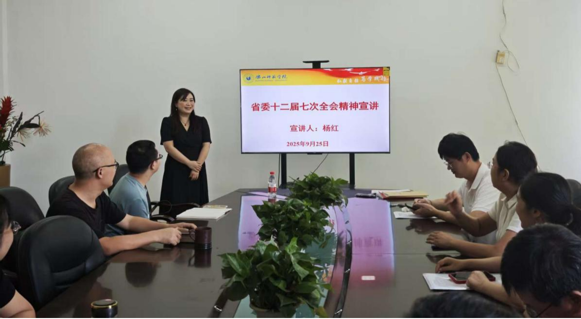 宣讲过程中,杨红老师以清晰的逻辑梳理省委十二届七次全会核心内容,从精神内涵、战略部署、目标任务三个维度展开深入解读。她紧密结合四川省经济社会发展实际及高等教育发展需求,生动讲解了如何将全会精神融入推动地方高质量发展、深化科教兴川的具体实践,帮助教职工直观理解全会对四川现代化建设新征程的重要意义。